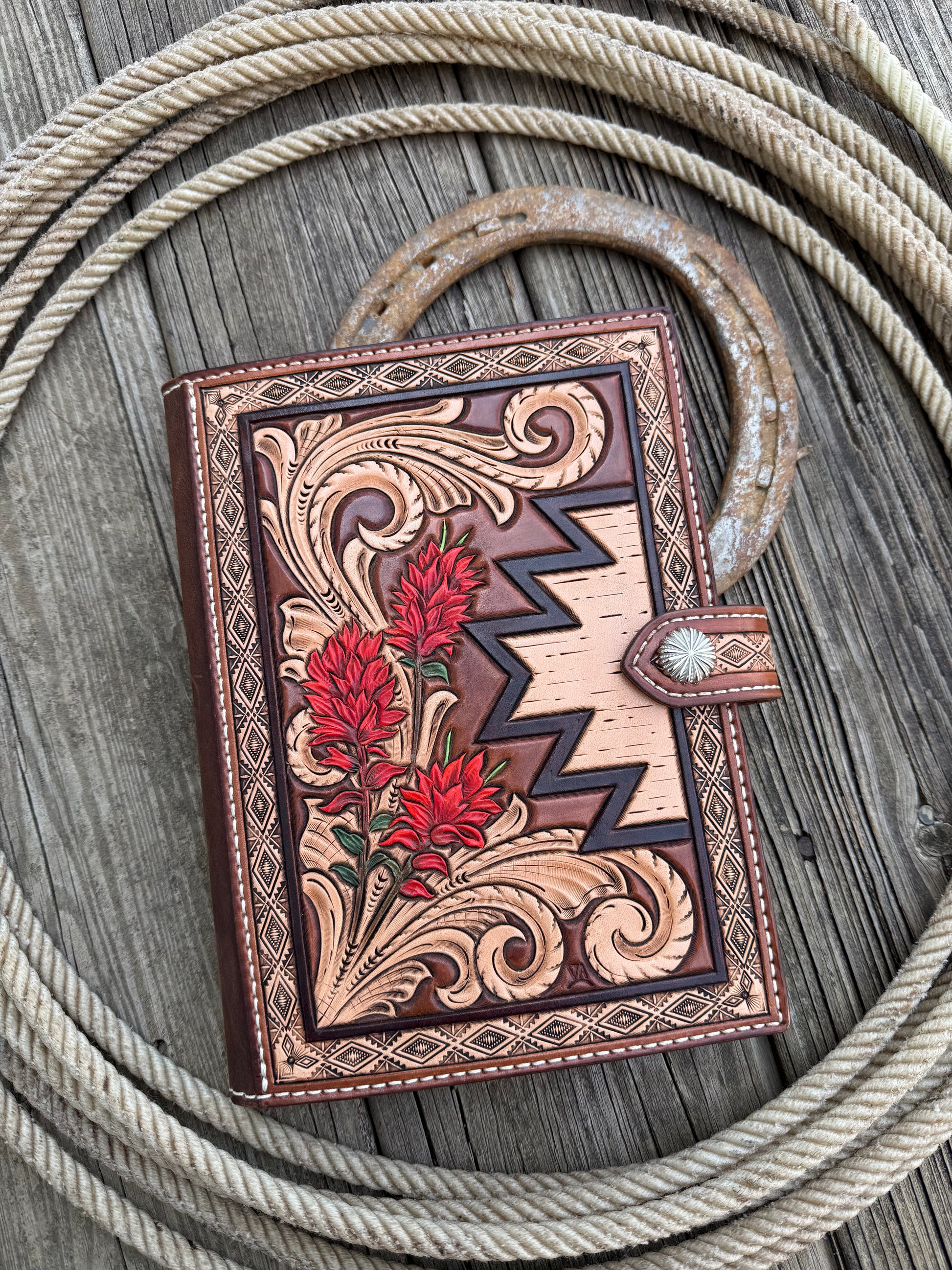 Handmade Tooled Leather Indian Paintbrush Notebook Cover